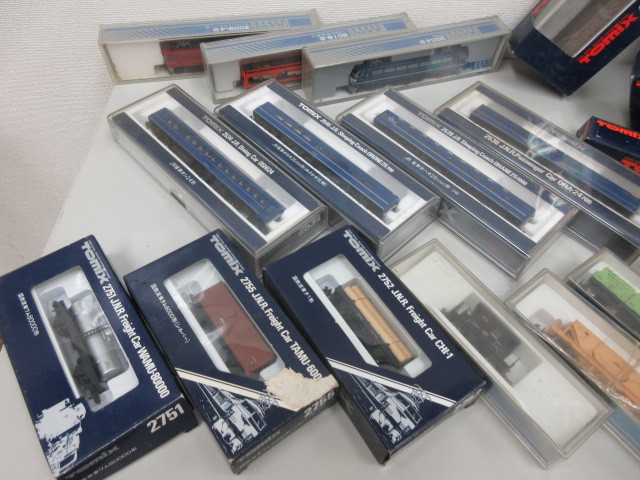 TOMIX(トミックス)やKATO(カトー)、BANDAI(バンダイ)などのNゲージやHOゲージの鉄道模型の車両や線路・レールやその他付属品や電源アダプタなどをダンボール5箱分ほどお買取りしました。